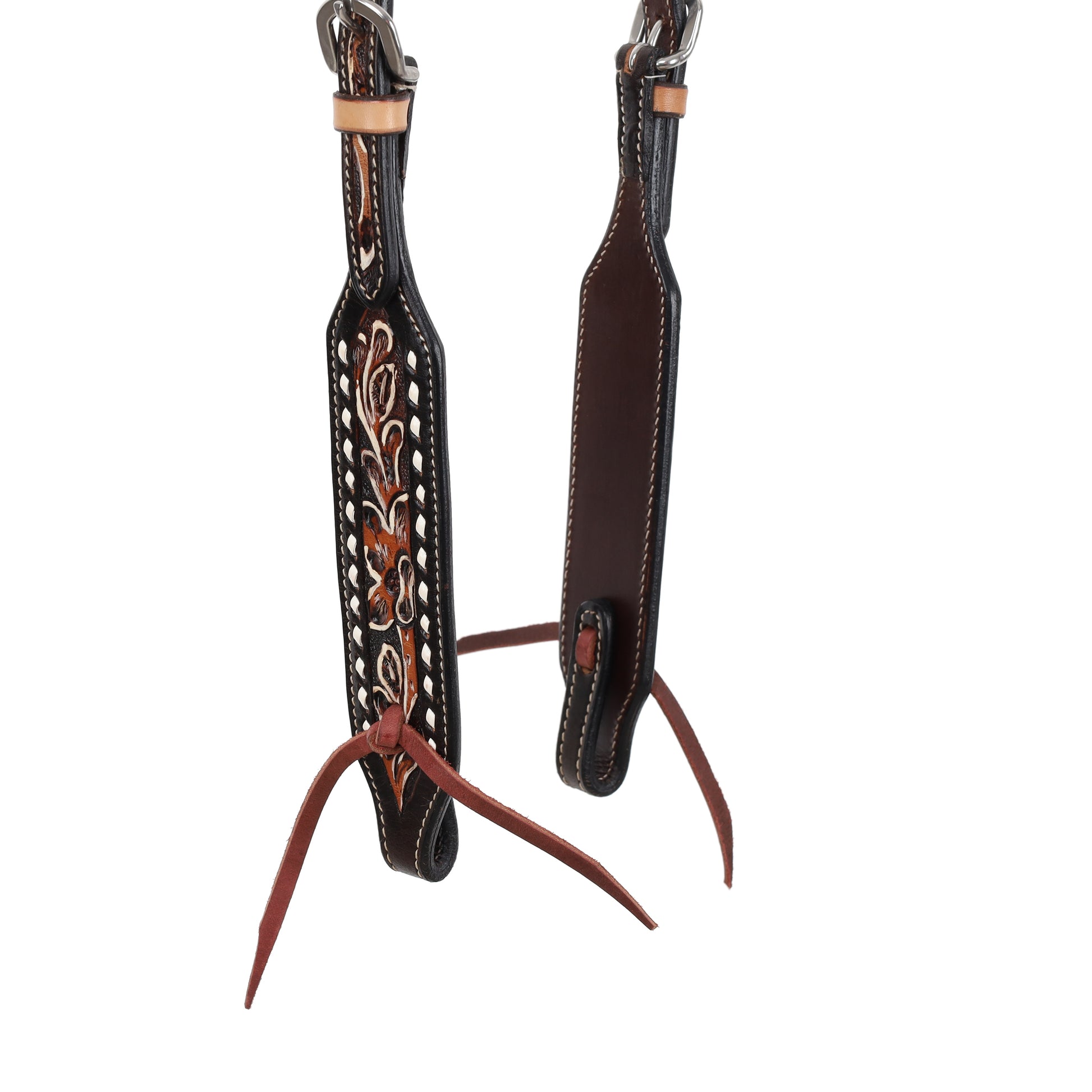 Practicality meets style with the leather tie bit connections, which provide a traditional and reliable way to attach your bit. Whether you're hitting the trails or working in the arena, the headstall combines durability, style, and functionality to meet the needs of every rider.