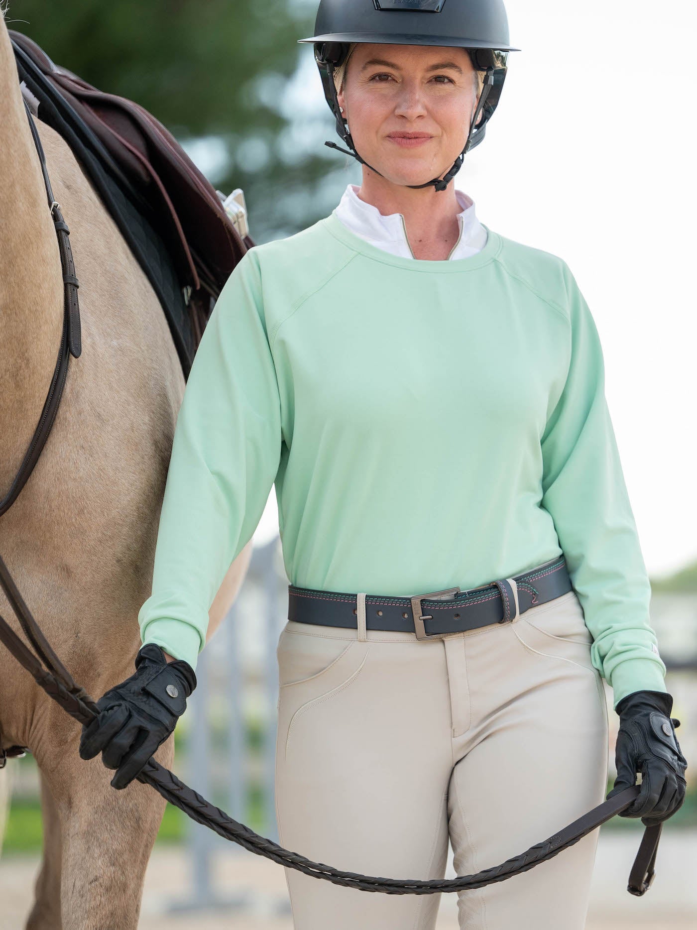 Introducing the perfect summer layer for early mornings in the stable or at horse shows. Keep your show shirt clean while you get ready for your ride, leave it on for a schooling session, or tuck it in for your jumper round! The smooth finish sheds hay, hair, and shavings while the brushed inside feels soft against your skin. It's available in a bright summer color and is finished off with a FITS patch on the sleeve. Going somewhere? It’s just as fashionable outside the stable!