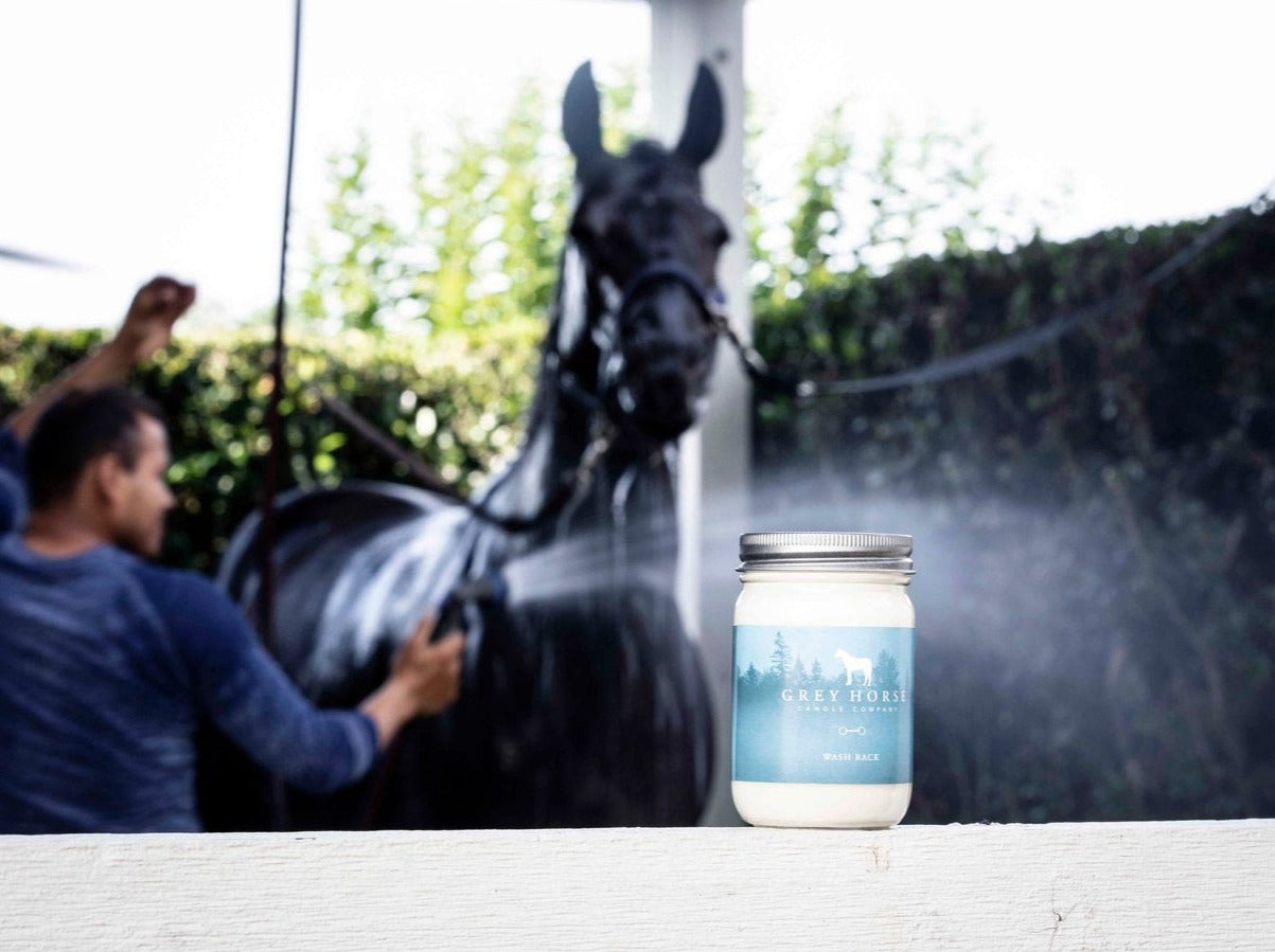 Inspired by the joy we get when we give our horse a bath! The spray of cool fresh water, the clean smell of soap, and that very short moment in time when your horse is completely clean. Sure, he’s going to go roll in the mud as soon as you turn him out, but it was still totally worth it for that one hug around his neck.